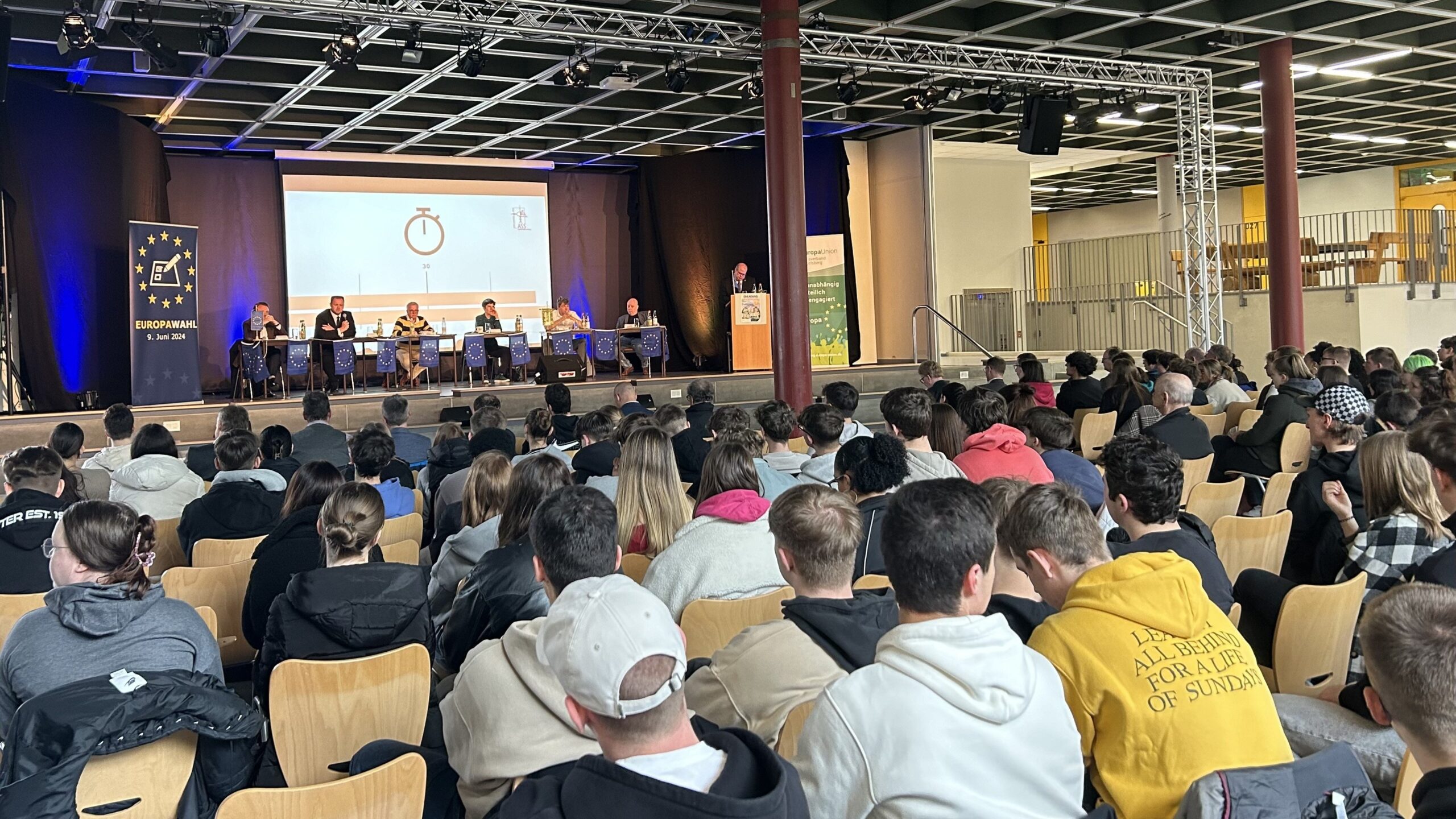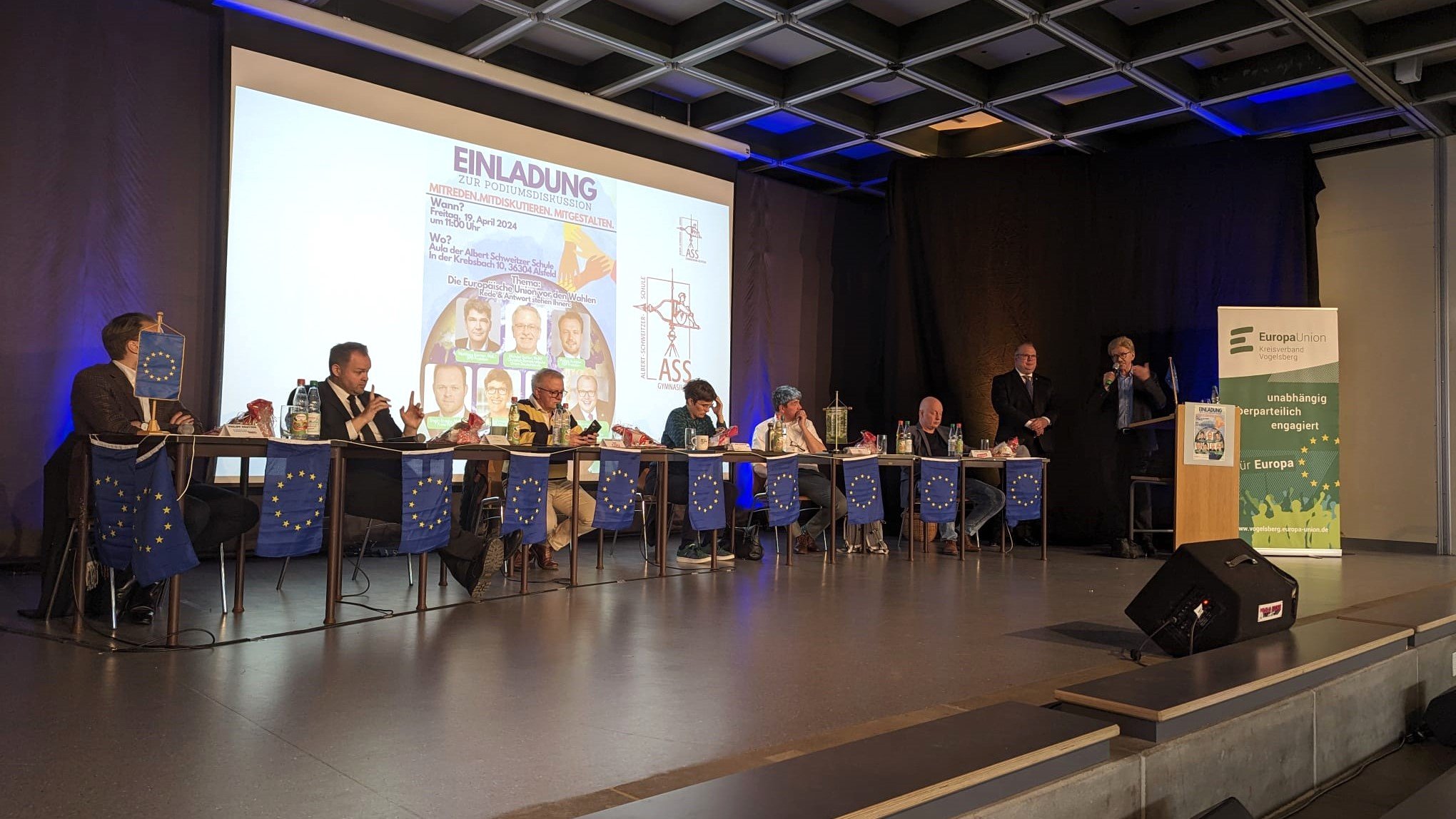 Im Rahmen dieser Veranstaltung, die von der Europa Union Vogelsberg organisiert wurde, nahm der Europaabgeordnete Eroglu gemeinsam mit Vertretern von anderen Parteien an einer offenen Diskussion teil. Diese fand vor 450 Schülerinnen und Schülern sowie vielen Besucher in der Aula der Schule statt und drehte sich um das Thema: Europawahl 2024.
